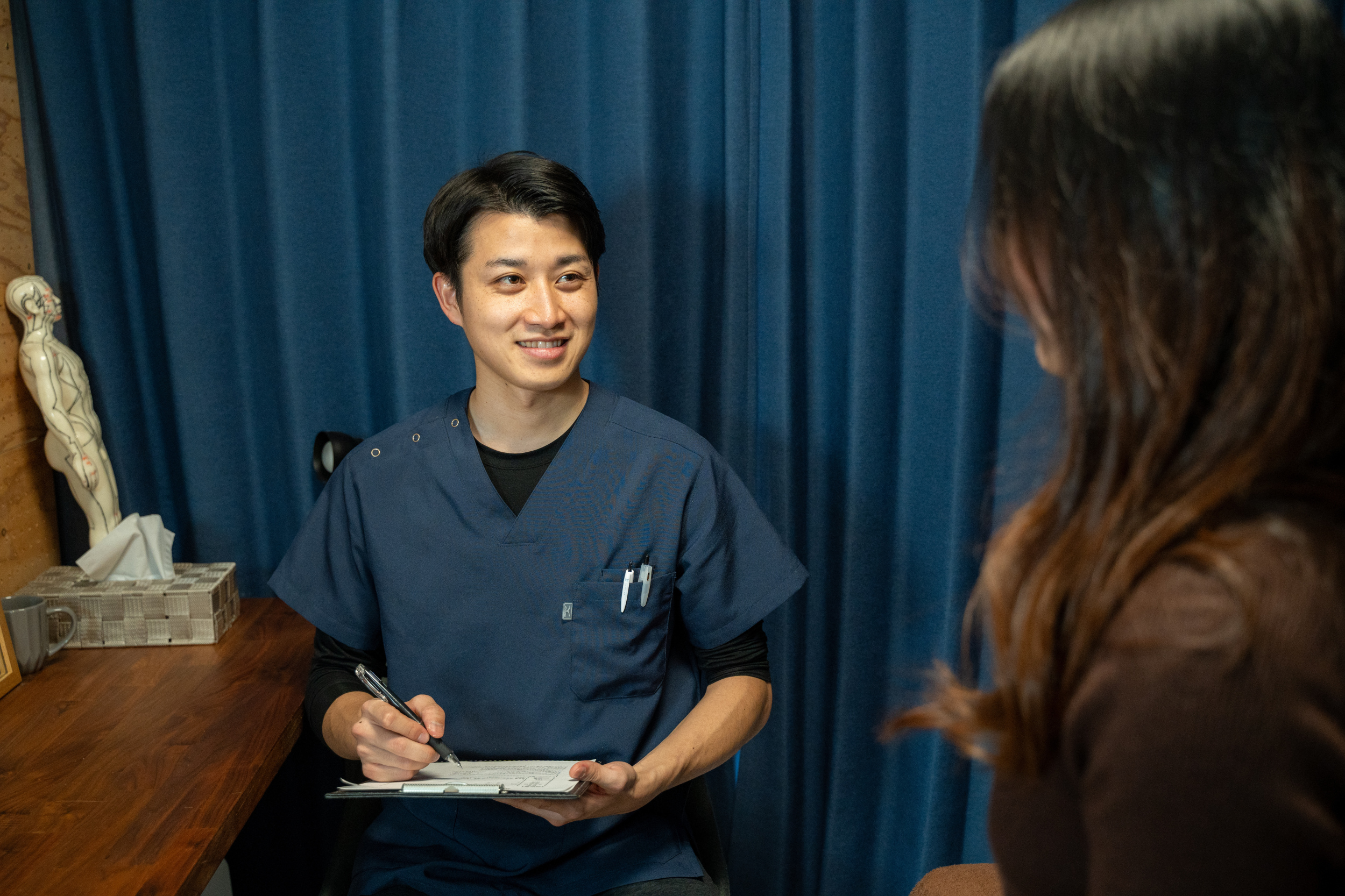 現在の状態を丁寧にお伺いします。その上で状態を評価し、足部から患部まで診ていき評価いたします。
